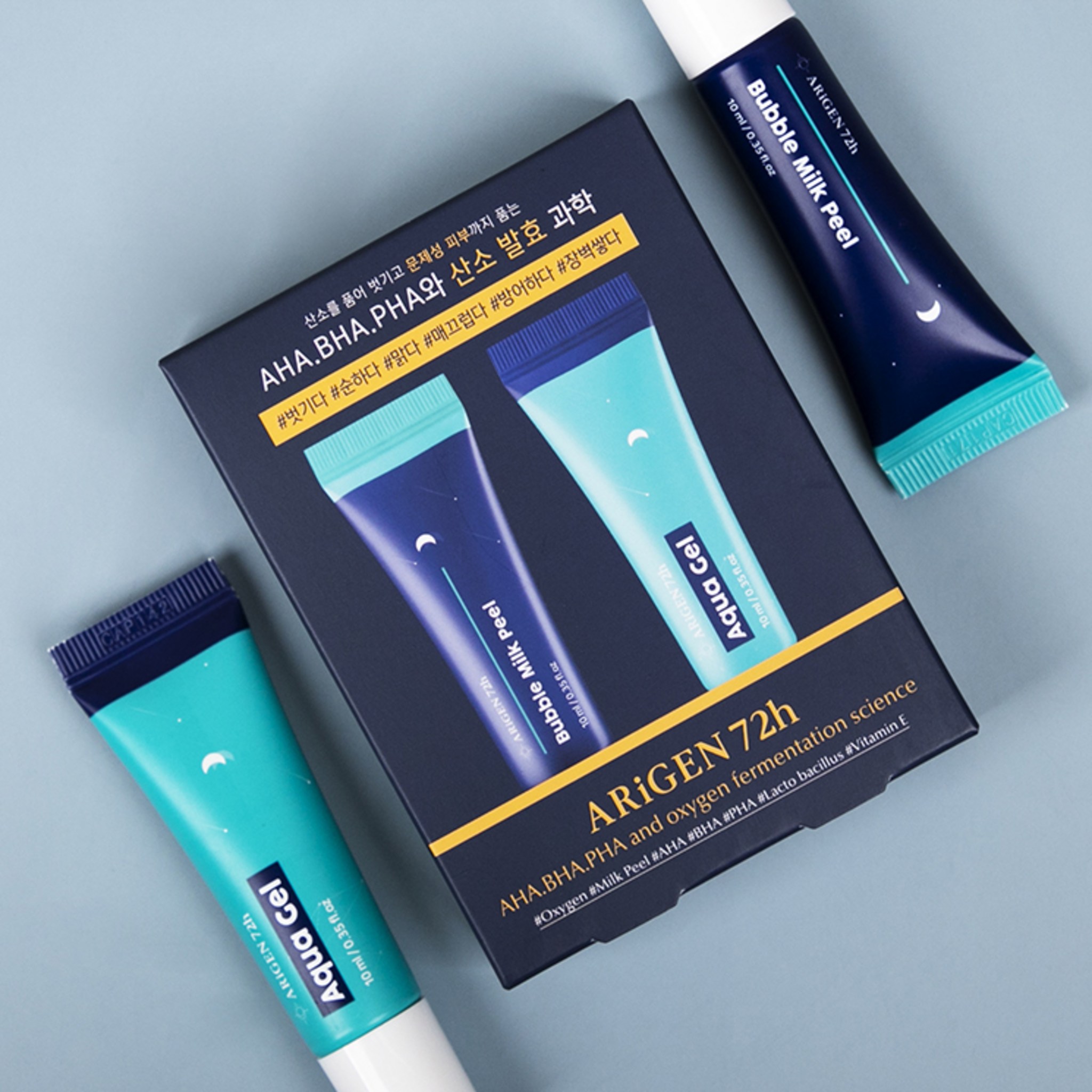 Ariderma Arigen 72 H Bubble Milk Peel 10ml + Aqua Gel 10ml Set