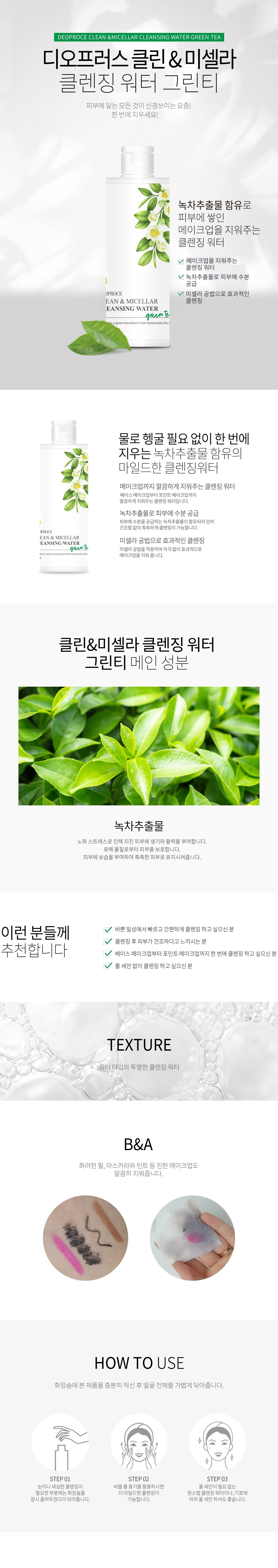 Deoproce Clean & Micellar Cleansing Water Green Tea