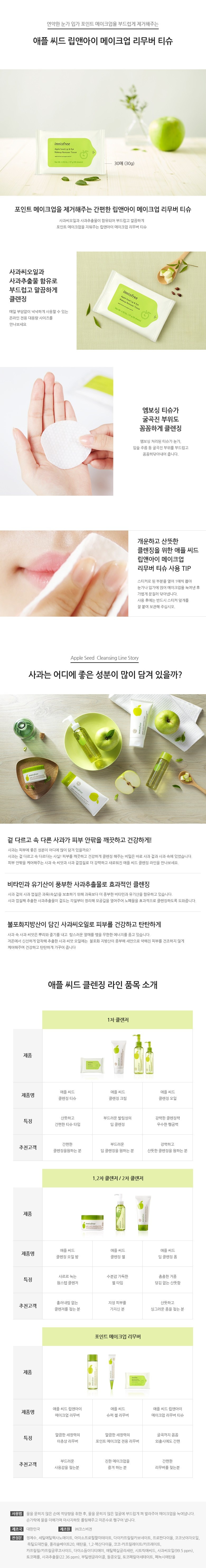 Innisfree Apple Seed Lip & Eye Makeup Remover Tissue 30ea