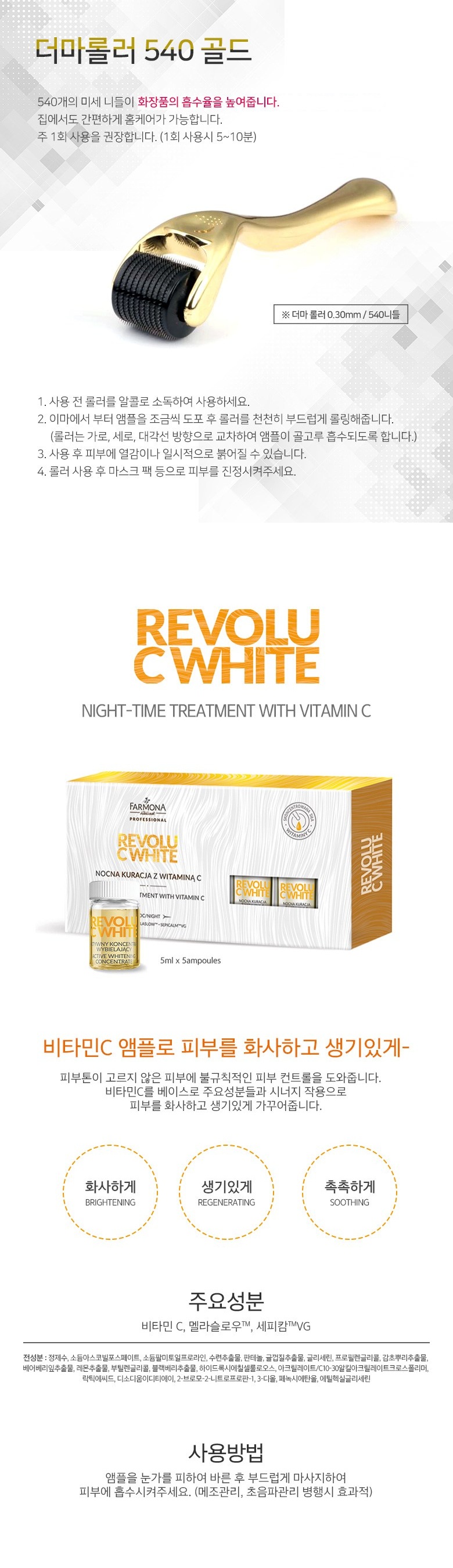 Pamona Revolu C White Ampoule 5ml x 5p + Derma Roller